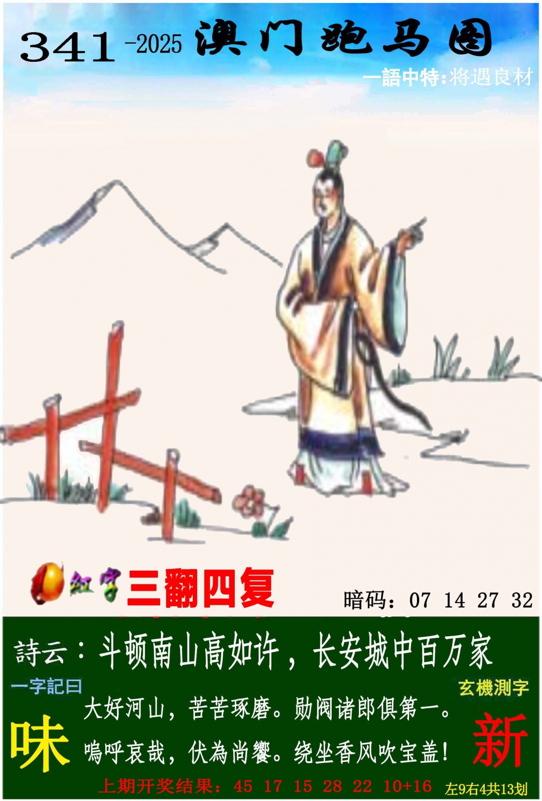 | 341期:平特肖【鼠】三连肖【鼠猴牛】 |
